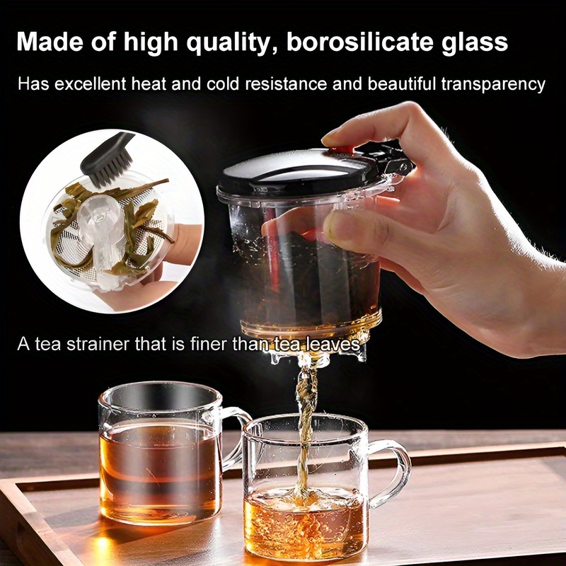 1pc High Borosilicate Glass Teapot with Infuser - Heat-Resistant (500°F), Detachable & Washable, One-Touch Click Tea Maker for Loose Leaf Brewing, Clear Glass Tea Pot with 2 Cups, Durable Borosilicate Glass, Kitchen Glasswar