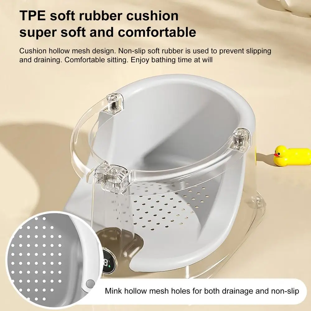 2.Comfort Bathing Experience: This baby bath seat provides real-time monitoring of bath water temperature using a built-in high-precision sensor to ensure the baby's delicate skin stays protected for a soothing bath experience